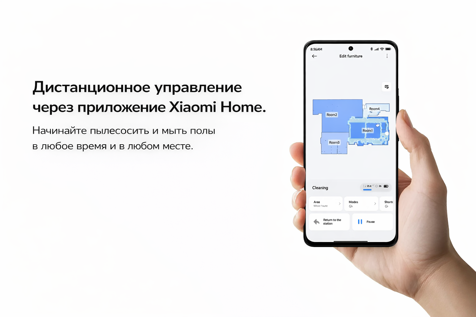 Управление через приложение, настройка расписания, построение карты помещения и поддержка голосовых ассистентов делают использование максимально удобным.