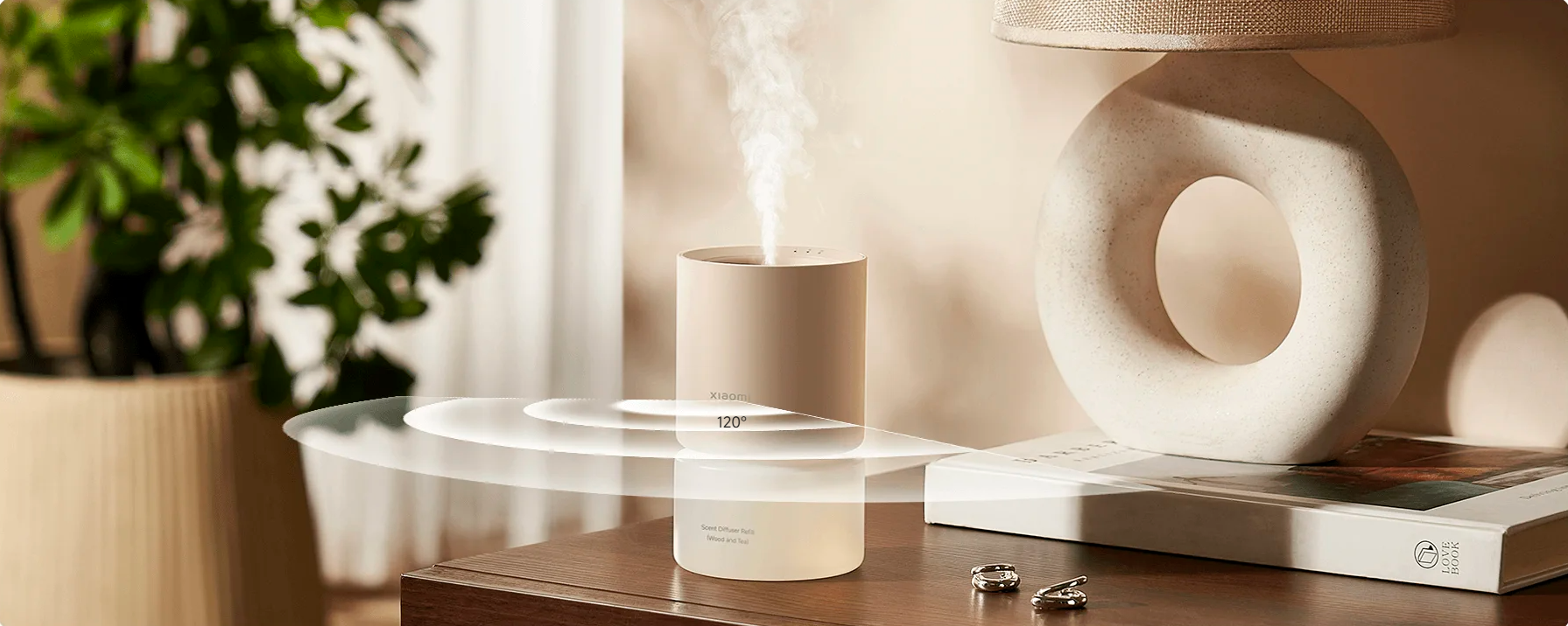 Xiaomi Smart Scent Diffuser — настольный ароматизатор для помещений до 20 м². Подойдёт для спальни, гостиной или рабочего пространства, создавая комфортную атмосферу.
